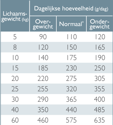 *Volwassen hond met een optimaal lichaamsgewicht en een normale hoeveelheid lichaamsbeweging.